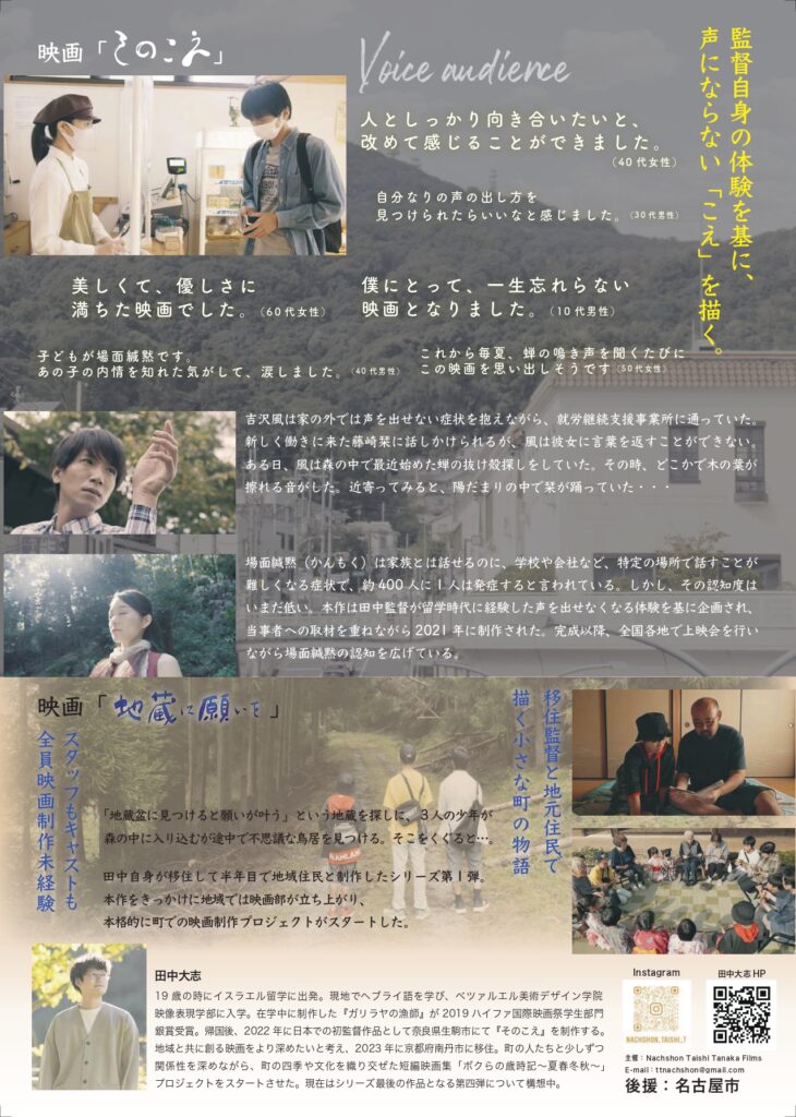 今回は初めて愛知県名古屋市での上映となるため、1人でも多くの方に見ていただき、場面緘黙や精神障害について知っていただきたいと思っています。