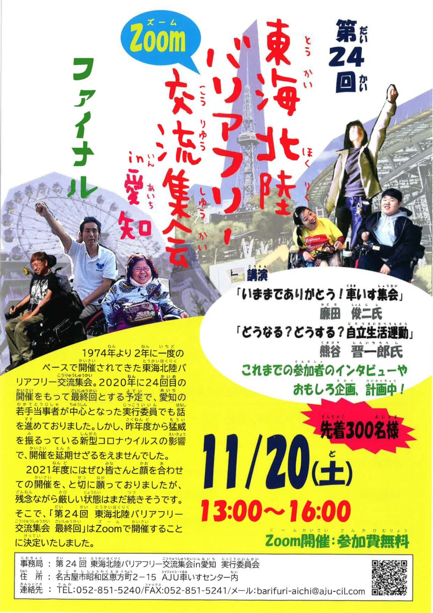 第24回東海北陸バリアフリー交流集会in愛知 実行委員会よりお知らせがございますので、ご案内させて頂きます。